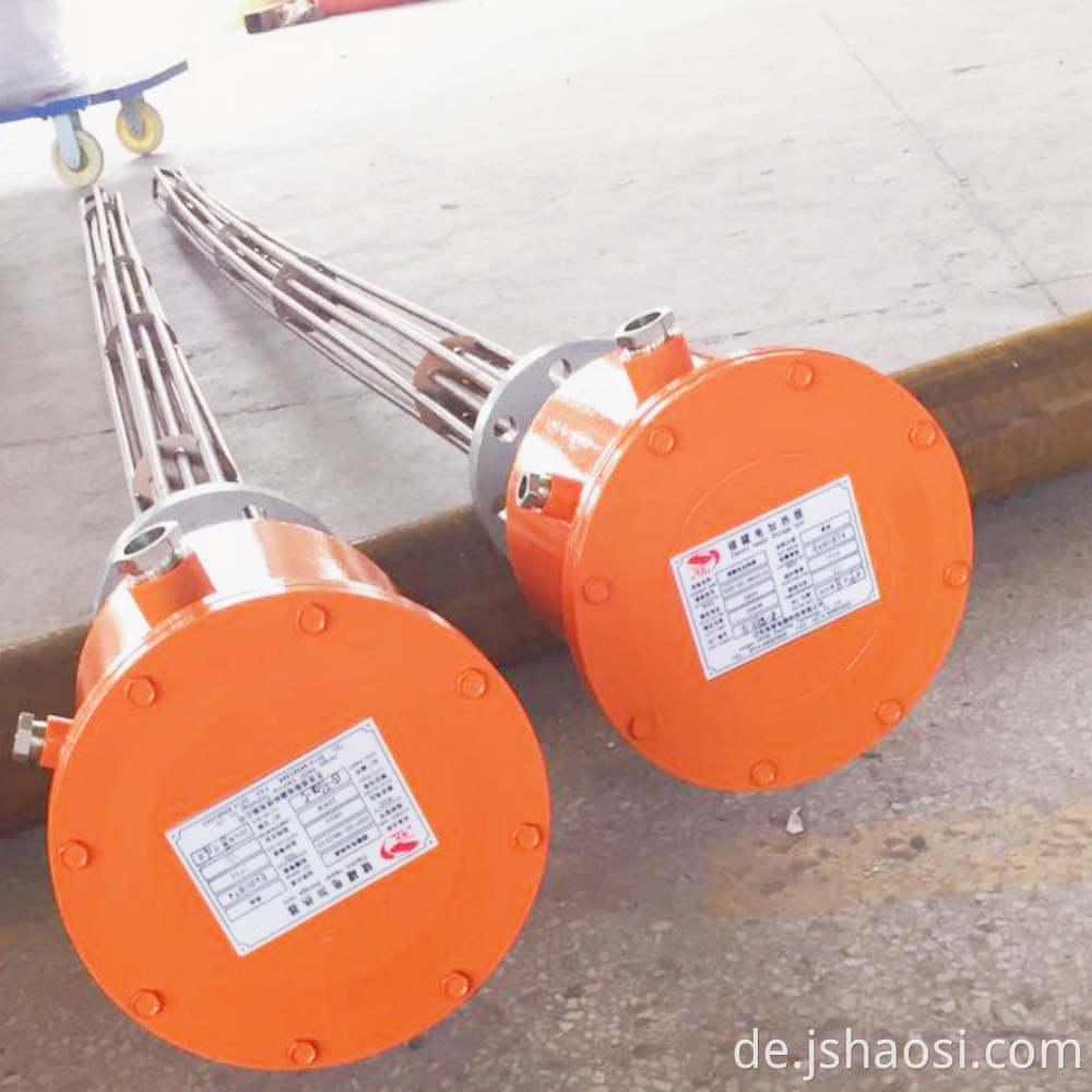 Flanschheizung (anpassbare explosionssichere Heizung) Flanschheizrohr ist ein festes U-Typ-Heizrohr, das durch die Kombination von Flanschstücken installiert ist, um den Zweck von hoher Leistung und schnellem Erhitzen zu erreichen. Der Betrieb ist einfach. Die Installation und Wartung ist schnell und bequem.