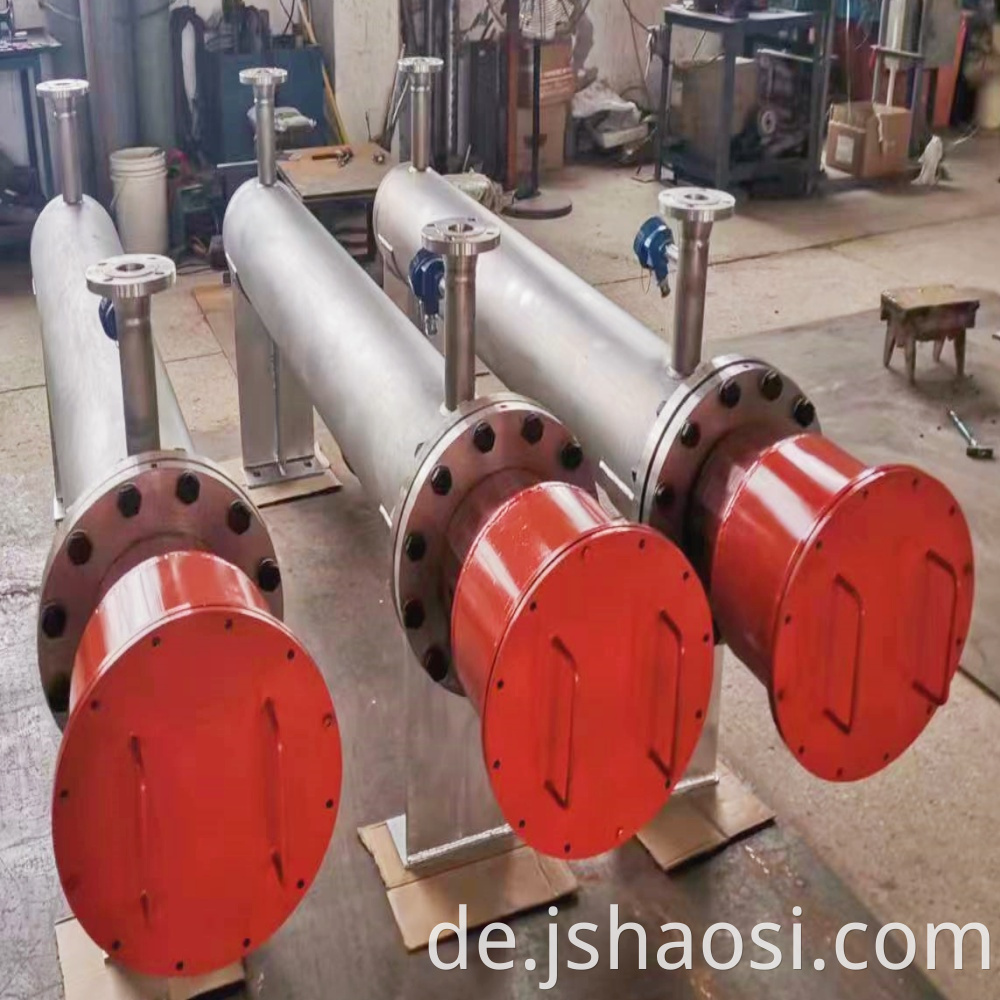 Die explosionssichere elektrische Heizung (Flüssigkeitstyp) wird bei direktem Erhitzen und Erwärmen des Strömungsmediums verwendet. Das Flüssigkeit mit niedrigem Temperatur fließt durch die Rohrleitung und tritt unter Druck in den Einlass ein.